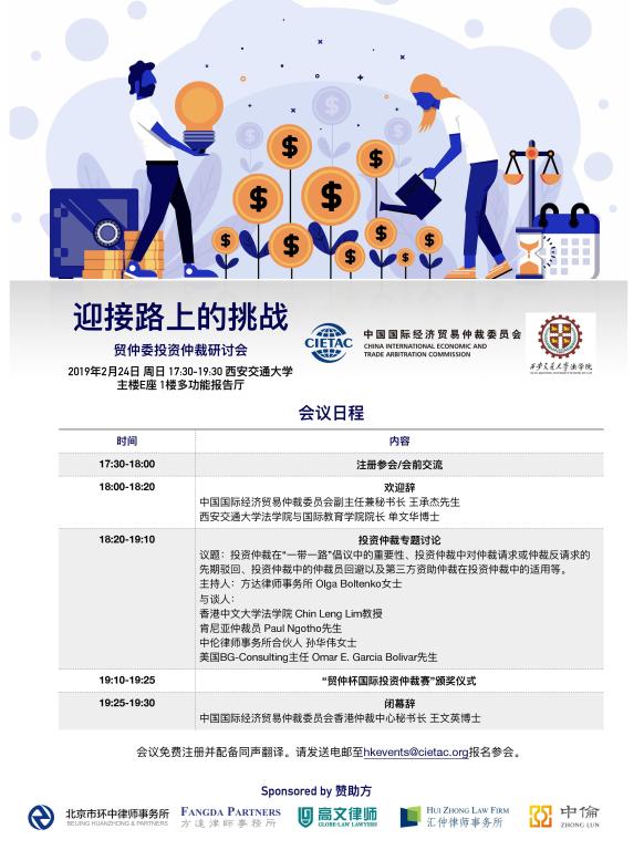 贸仲委投资仲裁研讨会暨“贸仲杯国际投资仲裁赛”颁奖仪式将于2019年2月24日下午5:30-8:00在k8体育·(sports)官方网站主楼E座多功能报告厅举办,诚邀各位师生参加!