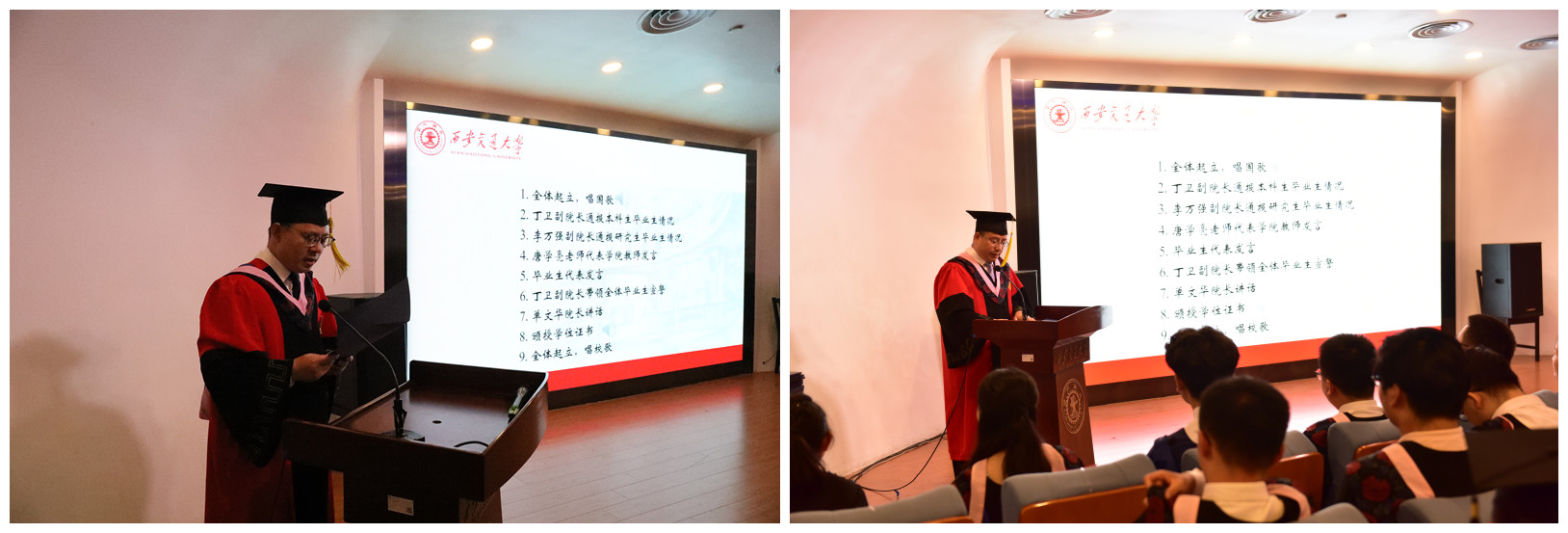 毕业典礼在庄严的国歌中开始。首先,丁卫副院长和李万强副院长分别通报了2021届本科生和研究生的就业情况。k8体育·(sports)官方网站2021届本科生到国内外一流高校深造的比例较往年大幅增长,研究生中有20余名研究生选择留在西部地区到祖国最需要的地方建功立业,另有5名研究生录取为选调生,前往基层、奉献社会、服务人民,用青春书写华彩篇章。