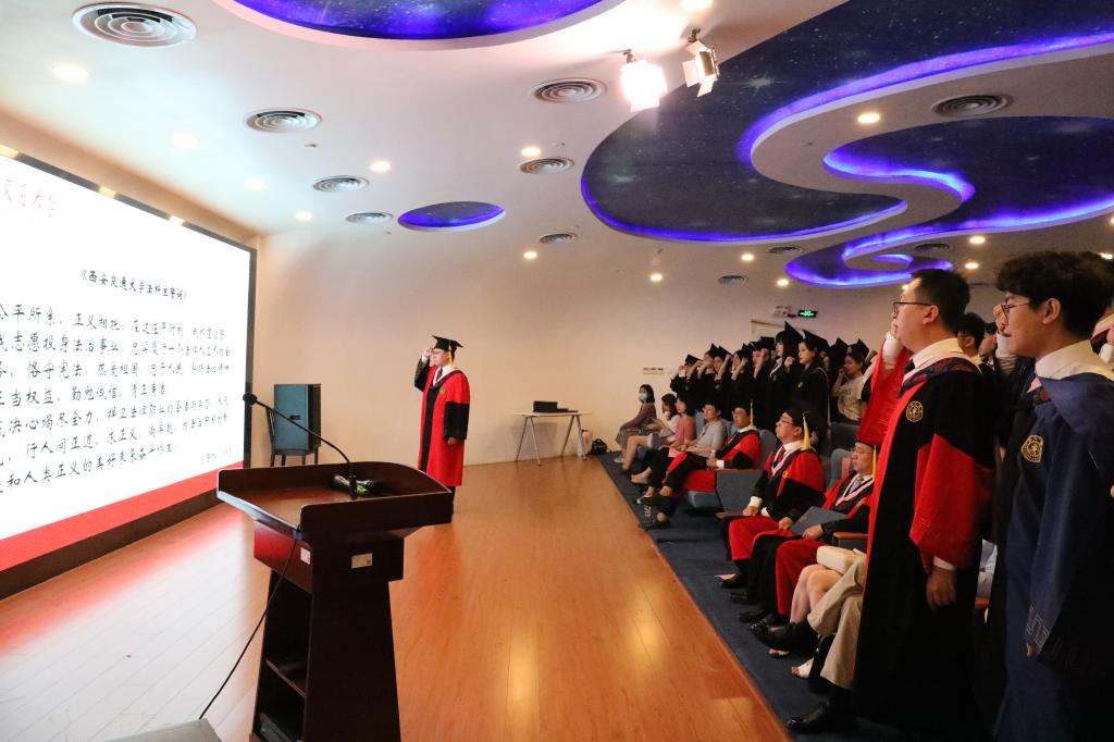 宣誓环节,丁卫副院长带领k8体育·(sports)官方网站2021届全体毕业生宣读法科生誓词。全体毕业生宣誓将竭尽全力,捍卫法律职业的圣洁与荣誉,养天地正气,行人间正道,求正义,尚卓越,为法治中国的繁荣发展和人类正义的美好未来奋斗终生。