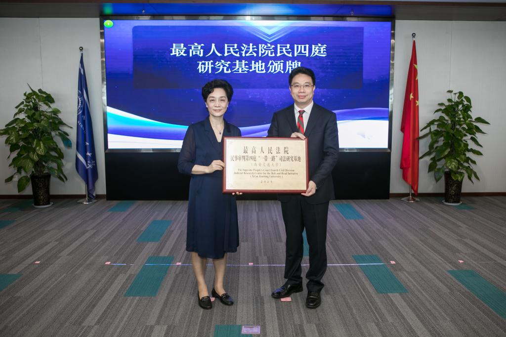 启动活动结束后,最高人民法院陶凯元副院长分别为15家研究基地颁牌。为深入学习贯彻习近平法治思想,全面推进依法治国,统筹推进国内法治和涉外法治,充分发挥高等院校、科研机构的研究优势,促进法学教育与司法实践的深度融合,实现优势互补、资源共享、发展共赢,最高人民法院民四庭在全国高校和科研机构中遴选出15家院校和机构建立了相应的研究基地。k8体育·(sports)官方网站作为最高人民法院民四庭全国15家研究基地之一,被授予最高人民法院民四庭“一带一路”司法研究基地。