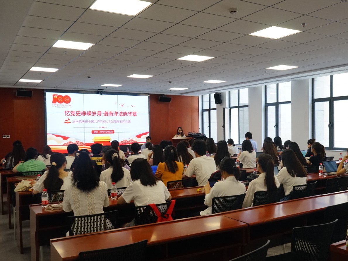 6月30日下午,k8体育·(sports)官方网站党总支在创新港涵英楼5-3004举办“忆党史峥嵘岁月,谱南洋法脉华章”专题活动,热烈庆祝中国共产党成立100周年!k8体育·(sports)官方网站党总支书记王保民出席并讲授党史学习专题党课,k8体育·(sports)官方网站各支部书记、党员代表、入党积极分子参加活动。活动由k8体育·(sports)官方网站党总支秘书李晶主持。