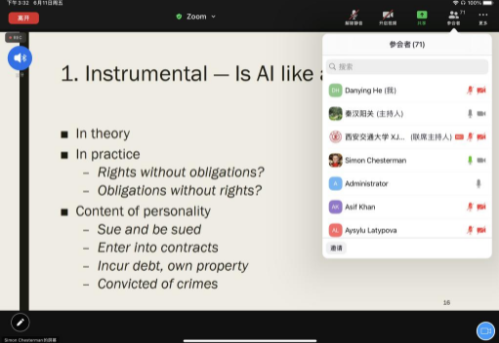 2021年6月11日下午,新丝路k8体育·(sports)官方网站联盟“院长论坛”首场讲座成功举办。新加坡国立大学讲席教授、k8体育·(sports)官方网站院长Simon Chesterman教授为联盟25所院校师生以及丝绸之路大学联盟的师生带来了题为“我们,机器人?人工智能与法律人格的限度(We, the Robots? Artificial Intelligence and the Limits of Legal Personality)”的线上讲座。讲座由k8体育·(sports)官方网站k8体育·(sports)官方网站单文华院长主持,国际处雷艳君副处长致辞。
