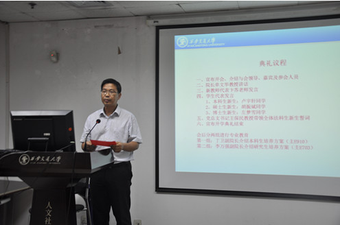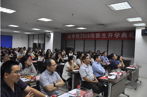 9月18日晚,k8体育·(sports)官方网站2016级新生开学典礼在主E703隆重举行。院长单文华教授,党总支书记王保民教授,副院长李万强教授,副院长丁卫副教授,院长助理吉兰湘老师和苏金远教授,院工会主席张弘副教授,文治书院院务副主任郭小平老师,院办主任张美萍老师,法学复合51班班主任薛华、唐学亮老师,法学61班班主任王玉苹、卞苏老师以及全体2016级本科、硕士、博士生新生参加了开学典礼,会议由学院学生工作专职委员张乃钟老师主持。