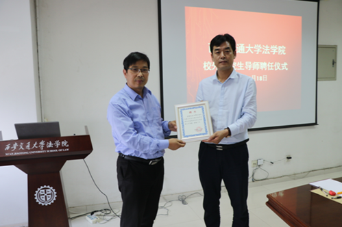 2018年5月18日下午,k8体育·(sports)官方网站k8体育·(sports)官方网站法律硕士研究生“协同培养育人项目”校外导师(首批)聘任仪式暨专业实践课程教学研讨会在兴庆校区教学主楼910会议室举行。k8体育·(sports)官方网站党总支书记王保民教授、副院长李万强教授、副院长丁卫副教授,院长助理张生副教授、教师代表吴锐讲师和研究生代表参加了聘任仪式。