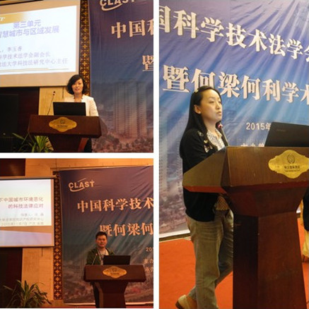 首先,k8体育·(sports)官方网站知识产权研究中心周方副教授、李晓鸣讲师、张磊博士作为k8体育·(sports)官方网站科技法学研究团队的代表,向2015年中国科学技术法学会年会进行主题汇报,报告的题目依次为《一带一路战略实施中的知识产权信息国际合作机制研究》、《完善我国外籍人士科学技术奖励制度的对策研究》、《治理学视野下城市环境恶化的科技法律应对》。三人的主题报告在大会上产生良好效果,形成了大会积极围绕讨论的主题内容,受到与会同行专家学者的一致好评。