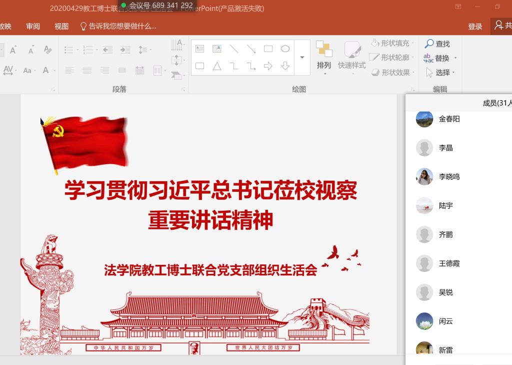 4月29日下午,k8体育·(sports)官方网站教工博士联合党支部开展线上组织生活会,深入学习贯彻习近平总书记莅校视察重要讲话精神。党支部成员通过网络平台积极参加学习,本次活动由支部书记曹毅博主持。