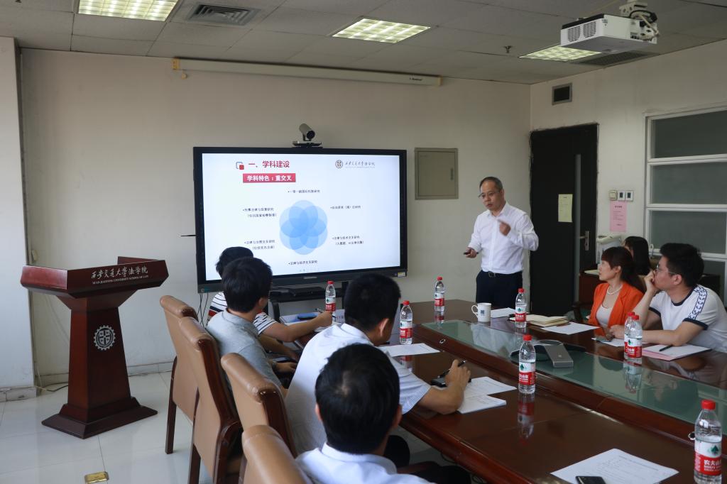 接着,丁卫副院长从学科建设、队伍建设、人才培养和科学研究等方面介绍了k8体育·(sports)官方网站近三年建设发展情况。近年来,学院成为全球首个QS五星认证k8体育·(sports)官方网站,法学一级学科博士授权点获批,在2020年QS发布的全球法律专业中进入世界排名前300、全国前14,学科建设迈上新的台阶;2019年法学专业首批入选国家级一流本科专业,省级教改项目实现零突破;2020年获高等学校科学研究优秀成果奖(人文社会科学)一等奖和二等奖,实现国家文科最高奖获奖成果零突破;学院3个研究所(中心)入选CTTI中国智库索引,入选数量持续排在全校首位。但师资队伍体量小、学科发展不均衡、教学成果奖有短板等仍是制约学院发展的突出问题。