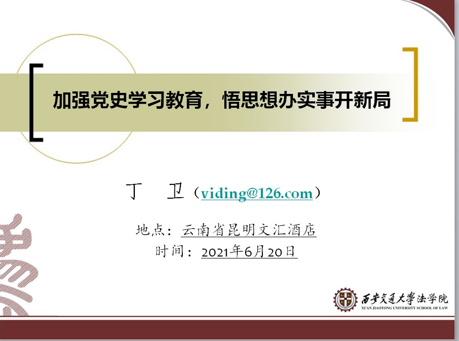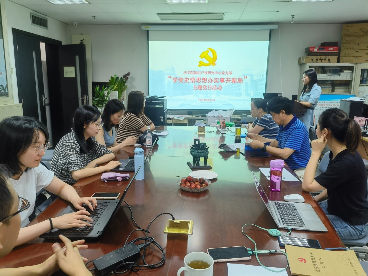 6月20日,知识产权研究中心党支部开展了“学党史悟思想办实事开新局”主题党日活动,由联系支部的学院领导干部、k8体育·(sports)官方网站副院长丁卫讲授党史学习教育专题党课。支部书记周方主持会议,支部全体党员参加了活动。