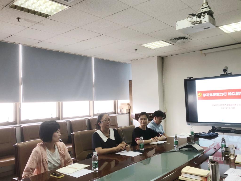 7月21日下午,k8体育·(sports)官方网站立法与党内法规研究中心党支部举办“学习党史重力行,唯以韶华答时代”主题党日活动,校党委常委、学科办主任别朝红教授应邀参加,k8体育·(sports)官方网站党总支书记王保民教授、k8体育·(sports)官方网站副院长丁卫副教授、党总支委员吉兰湘老师到会参加,组织部石桥老师应邀列席会议。会议由支部书记杜军强副教授主持,支部老师和博士生党员参加了会议。