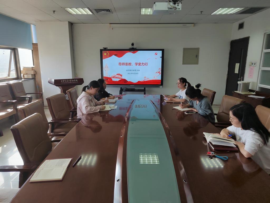 9月29日下午,k8体育·(sports)官方网站行政党支部以“尊师重教,学史力行”为主题召开专题组织生活会,学习习近平总书记给全国高校黄大年式教师团队代表的回信精神,贯彻落实习近平新时代教育思想。结合党史学习教育和“我为师生办实事”等工作,研讨加强师德师风建设举措。会议由行政党支部书记李晶主持。