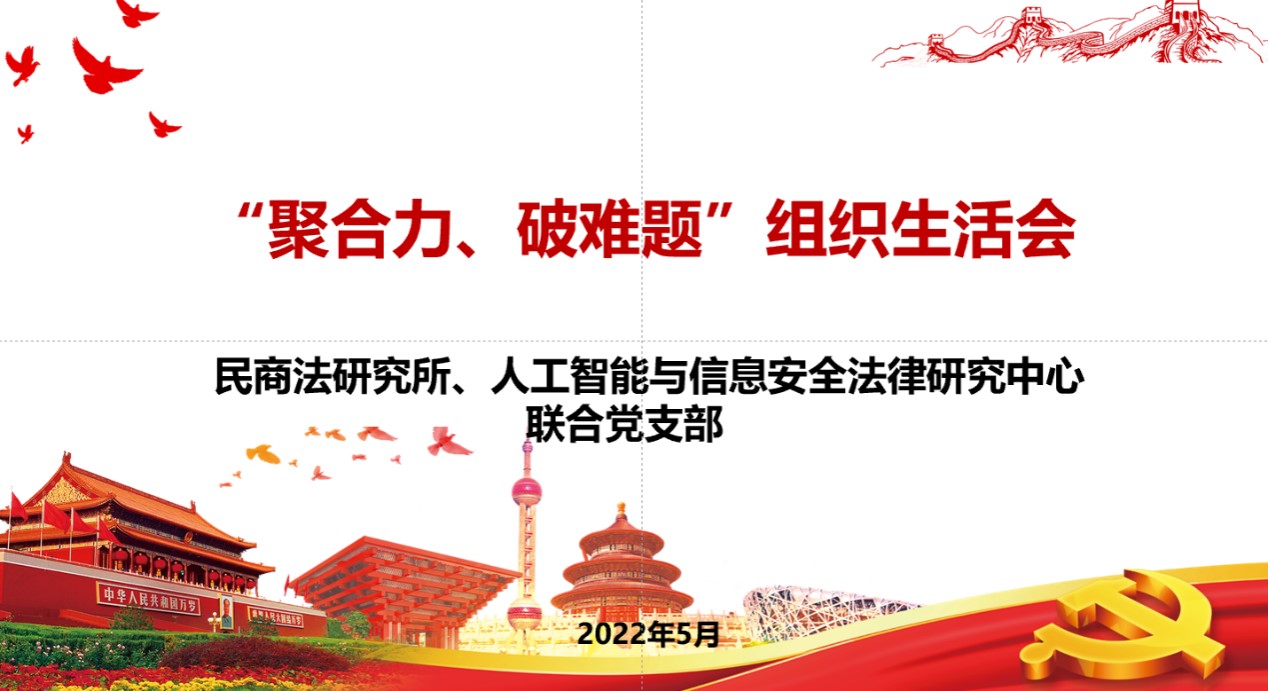5月31日,k8体育·(sports)官方网站民商法研究所、人工智能和信息安全法律研究中心联合党支召开“聚合力、破难题”主题党日活动。会议由支部书记薛华老师主持。