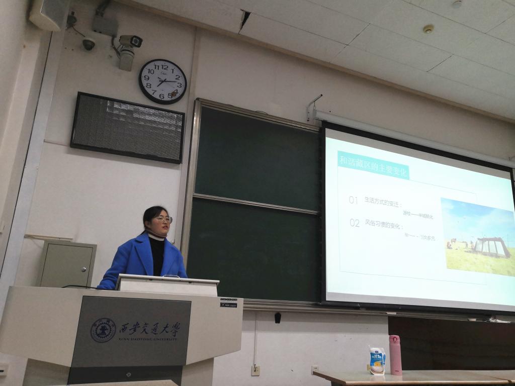 宣讲会上,安着吉同学以“改革开放促发展,和谐藏区谱新篇”为主题,结合自身经历,跟大家分享了我国教育政策在藏区一步步落实,藏区群众从不愿意入党到以我党为神圣信仰的历程。并结合藏区生活、教育的前后对比图阐释改革开放对藏族人民的重大意义。王怡文同学以“抓住机遇,追求卓越,勇于担当,爱国奋斗”为主题,通过李大钊、钱学森的事迹,鼓励青年党员更应该严格要求自己,为实现“中国梦”不懈奋斗。