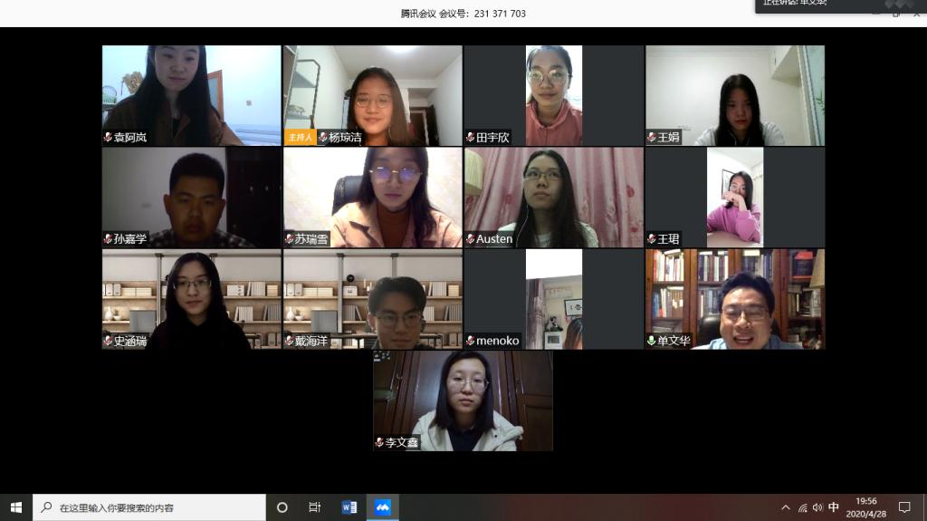 4月28日晚,k8体育·(sports)官方网站硕2018级党支部组织开展线上组织生活会,会议的主题以习近平总书记考察k8体育·(sports)官方网站,并鼓励交大师生努力发扬西迁精神,争做时代新传人为背景,支部特别邀请了k8体育·(sports)官方网站副院长丁卫老师与同学们一起交流学习,会议由支部书记谢雨蓉主持。