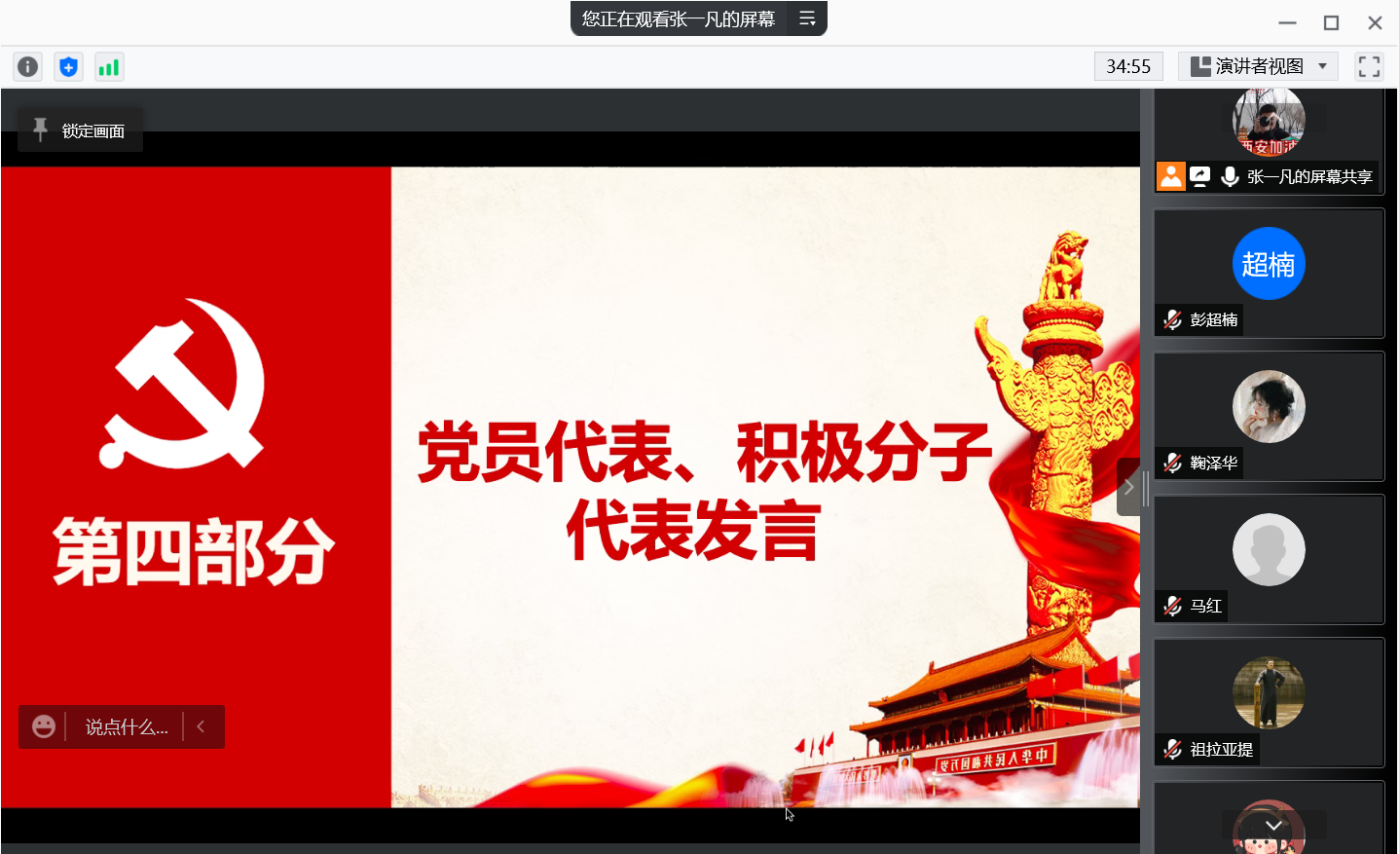 硕1173支部全体成员纷纷表示,将继续团结协作,遵守校园防疫规定,为抗击疫情贡献力量。相信在默默奋斗的无数前线抗疫人员以及大家的共同努力下,西安终将战胜疫情,打赢这场疫情防控阻击战。会议在大家的新年祝福中进入尾声。
