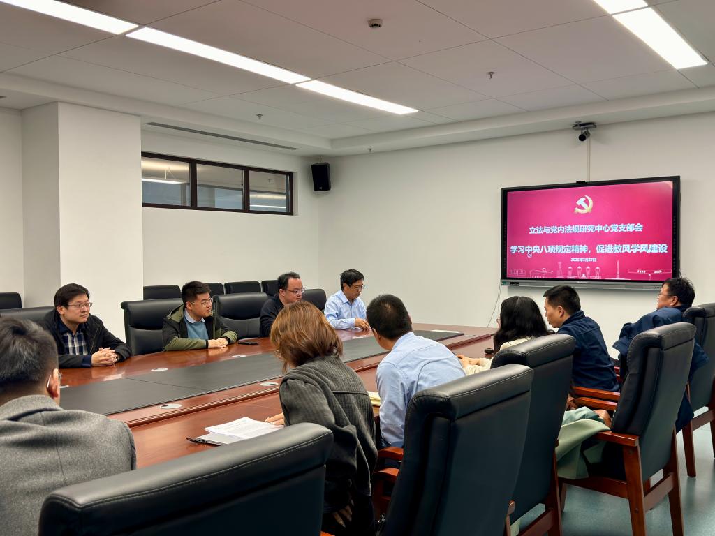 3月27日,立法与党内法规研究中心党支部在创新港5-3079会议室召开了主题为“学习中央八项规定精神,促进教风学风建设”的支部会议。本次会议由中心支部书记杜军强主持,k8体育·(sports)官方网站党委书记王保民教授、支部教师和博士生党员参加了会议。