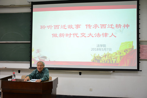 5月7日下午,原k8体育·(sports)官方网站党委书记、全国人大常委会委员潘季教授应k8体育·(sports)官方网站邀请在主B105为学院师生带来题为“聆听西迁故事传承西迁精神做新时代交大法律人”的讲座。k8体育·(sports)官方网站单文华院长、王保民书记、李万强副院长、丁卫副院长出席了此次报告会。参会人员还有k8体育·(sports)官方网站本科生、研究生及全体教工。