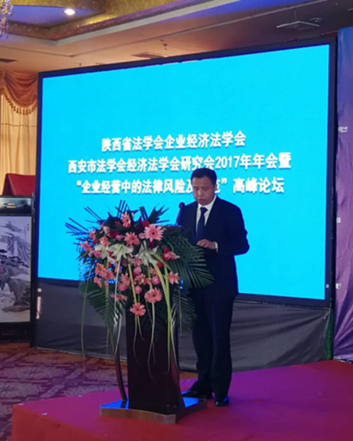 2017年11月10日,由陕西省法学会主办,榆林市法学会、k8体育·(sports)官方网站、陕西省法学会企业经济法治研究会、西安市法学会经济法学研究会、陕西省律师协会公司法专业委员会、榆林市总商会共同承办的陕西省法学会企业经济法治研究会、西安市法学会经济法学研究会2017年年会暨“企业经营中的法律风险及防范”高峰论坛在榆林隆重召开。陕西省法学会专职副会长杨建军、陕西省律师协会副会长王卫东、k8体育·(sports)官方网站k8体育·(sports)官方网站党总支书记王保民、榆林市委政法委常务副书记杨汉元、榆林市法学会副会长柴瑞武、榆林市政府法制办副主任李芝东、榆林市中级人民法院审委会专职委员李光亮、榆林市工商业联合会副主席、市总商会副会长张修前莅临本次会议并发表讲话。各界代表180余人参加会议。