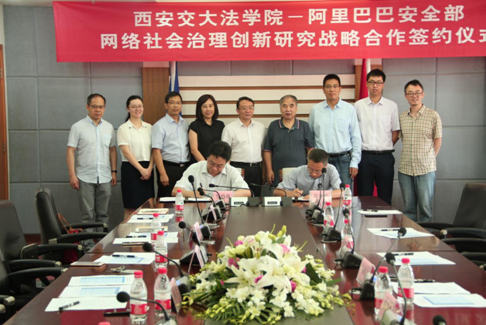 2017年7月22日上午,西安交大k8体育·(sports)官方网站与阿里巴巴安全部网络社会治理战略合作签约仪式在k8体育·(sports)官方网站顺利举行。阿里巴巴集团首席风险官(CRO)刘振飞,安全部资深总监侯金刚,安全部政府事务专家李斌,法务部研究中心副主任顾伟,西安交大副校长席光,校长助理、k8体育·(sports)官方网站院长单文华,社会科学处长贾毅华,k8体育·(sports)官方网站党总支书记王保民,副院长丁卫,信息安全法律研究中心主任马民虎,副主任王玥,k8体育·(sports)官方网站副教授吴关龙共同出席签约仪式,k8体育·(sports)官方网站和信息安全法律研究中心部分师生代表参与仪式。签约仪式由k8体育·(sports)官方网站党总支书记王保民主持。