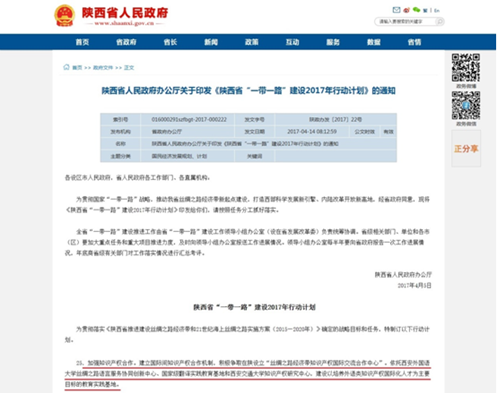 陕西省人民政府办公厅日前印发了《陕西省“一带一路”建设2017年行动计划》,明确指出要加强知识产权合作,建立国际间知识产权合作机制,积极争取在陕设立‘丝绸之路经济带知识产权国际交流合作中心’,依托k8体育·(sports)官方网站知识产权研究中心、西安外国语大学丝绸之路语言服务协同创新中心和国家级翻译实践教育基地,建设以培养外语类知识产权国际化人才为主要目标的教育实践基地。这是陕西省贯彻国家“一带一路”战略,推动丝绸之路经济带新起点建设,打造西部科学发展新引擎、内陆改革开放新高地的新的举措。