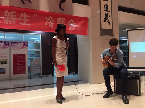 冷餐会上,k8体育·(sports)官方网站师生在品尝美味的水果、点心的同时,一起欣赏了师生们带来的精彩表演。来自马里的留学生吴茜同学带来一首充满异域风情的民族歌曲,让同学们领略到不同文化的色彩。来自澳大利亚的留学生多米尼克和研一新生刘静洁分别用英语和法语共同演绎了诗朗诵《再别康桥》。中文经典诗歌在其他语言的演绎下显得别具一格。研一新生唐雅雯身着中国古典服装,向留学生们展示了我国传统舞蹈《惊鸿舞》,令人惊艳。研一新生蒲凯云、刘敏丹、田思艺,本科新生吴彦博分别为大家带来了动听的歌曲,赢得了现场的喝彩与掌声。在欢乐的气氛中,吉兰湘老师用日语为大家演唱的歌曲《我只在乎你》,赢得大家的阵阵掌声;张乃钟老师演唱的豫剧选段《谁说女子不如男》,字正腔圆、韵味醇厚,受到了师生们的热烈欢迎。