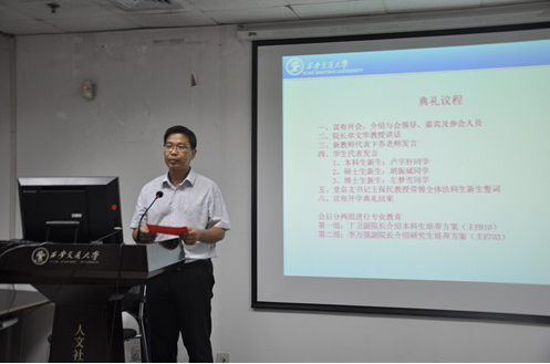 9月18日晚,k8体育·(sports)官方网站2016级新生开学典礼在主E703隆重举行。院长单文华教授,党总支书记王保民教授,副院长李万强教授,副院长丁卫副教授,院长助理吉兰湘老师和苏金远教授,院工会主席张弘副教授,文治书院院务副主任郭小平老师,院办主任张美萍老师,法学复合51班班主任薛华、唐学亮老师,法学61班班主任王玉苹、卞苏老师以及全体2016级本科、硕士、博士生新生参加了开学典礼,会议由学院学生工作专职委员张乃钟老师主持。