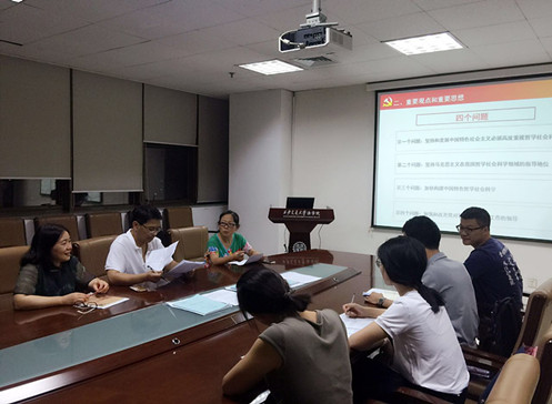 2016年7月13日晚,k8体育·(sports)官方网站党总支在主楼E910召开了“两学一做”党支部书记学习研讨会。k8体育·(sports)官方网站党总支书记王保民,党总支委员、学生工作专职委员张乃钟和教工党支部书记吉兰湘参加了学习研讨会。