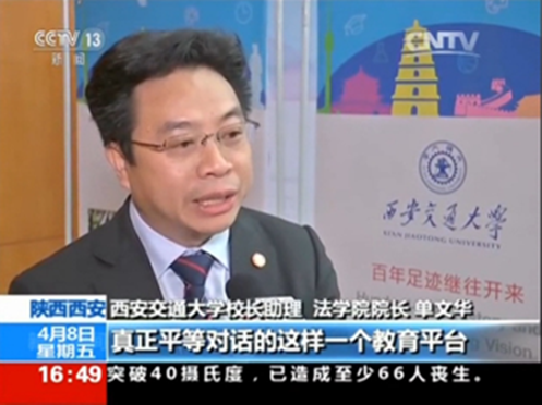 央视报道重点介绍了西安交大k8体育·(sports)官方网站和丝绸之路国际法与比较法研究所在推进“一带一路”相关的制度研究。报道指出,“在法律层面,‘丝绸之路经济带’建设已经有一些双边条约和多边安排,但还比较分散化,亟待聚沙成塔。丝绸之路大学联盟下设的‘丝绸之路k8体育·(sports)官方网站联盟’正在通过学术论坛等形式推动法律建构的完善。”在采访中,研究所所长、新丝路k8体育·(sports)官方网站联盟主席单文华教授表示,“我们希望[通过‘丝绸之路k8体育·(sports)官方网站联盟’]建立的是一个真正平等对话的教育平台。在这里,来自东西方,南北方,发达国家和发展中国家的法学教育研究机构能够真正地实现平等对话。在这个过程中,我们不再是附庸,也不再是普通的参与者。我们是最积极的参与者,甚至是引领者,至少是引领者之一。”