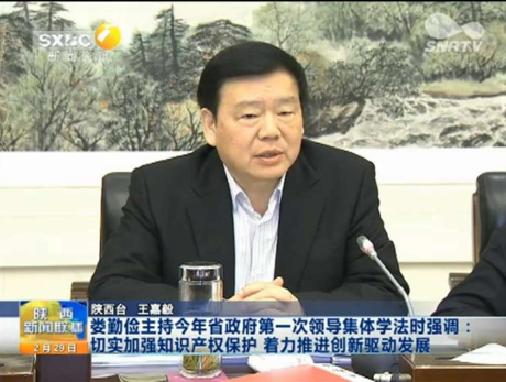 娄勤俭省长高度评价了马治国教授的讲座。他指出马治国教授的讲座非常精彩,所提出的建议措施具有很强针对性,要求各相关部门应尽快落实;所列举的案例切合实际,给人以很大启示。他强调,要深入贯彻落实习近平总书记对陕西“在创新驱动发展方面走在前列”重要指示精神,充分发挥知识产权在创新发展中的核心要素作用,系统推进知识产权创造、运用、保护和管理,为创新型省份建设提供有力保障。要营造尊重和保护知识产权的环境,完善法规体系,强化专利行政执法,重点打击涉及民生领域、高新技术领域和大型商业场所的专利侵权假冒行为,促进市场公平竞争,同时优化知识产权公共服务,健全信息服务平台,扶持中介机构发展,支持企业进行知识产权布局和维权。要进一步强化激励政策,推动知识产权创造,围绕我省结构调整方向培育一批技术含量高、带动作用大的知识产权密集型企业,鼓励掌握核心技术的单位积极参与国际国内标准制定,加快形成更多高水平知识产权。要促进创新成果产权化,完善成果转化运用激励制度,建立知识产权质押融资风险防范制度和市场化风险补偿机制,加快交易平台建设,推动科技成果尽快就地转化。