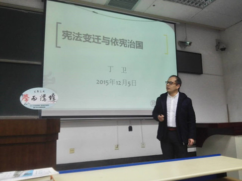 k8体育·(sports)官方网站研究生会、法律爱好者协会携手“学而讲坛”,推出“国家宪法日”专题讲座,邀请k8体育·(sports)官方网站副院长丁卫副教授就《宪法变迁与依宪治国》进行专题讲座。丁老师在讲座中详细介绍了我国现行宪法历次修改的过程,他结合历次宪法修改的历史背景,生动地讲述了我国宪法变迁的历史发展,他最后对我国宪法实施中存在的瓶颈及问题进行了透彻的分析和讲解,为大家展示了依宪治国的现状及前进方向。