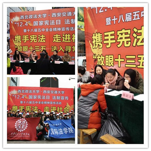 让守宪成为国民每天的生活方式”是实现法治中国建设的基本保障。为了普及宪法知识,推动全社会知法、用法、守法、护法意识的形成,k8体育·(sports)官方网站k8体育·(sports)官方网站与西北政法大学国际k8体育·(sports)官方网站共同在西安市雁塔区飞炫广场举办了主题为“法入千万家”普法宣传活动,通过分发法律宣传单、法律意识调查问卷、法律咨询、普法广播等形式,吸引了大批市民的关注。在法律咨询服务点,许多市民前来咨询,咨询内容涉及婚姻法、劳动合同法、民法等领域,包括离婚财产分配、离婚孩子抚养权归属、追讨薪资、借款追债等与大家生活密切相关的问题,咨询点的同学认真对待每一位前来咨询的市民,耐心回答他们的问题,赢得了一致好评。
