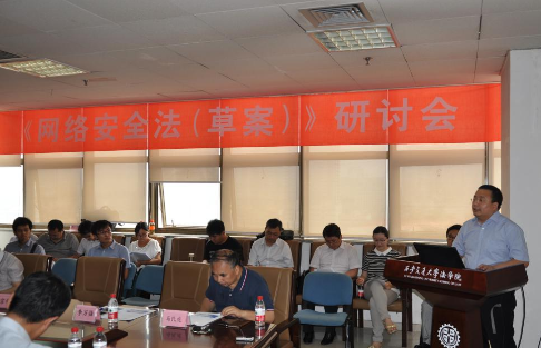 2015年6月,第十二届全国人大常委会第十五次会议初次审议了《中华人民共和国网络安全法(草案)》,在面向社会征求意见的同时,全国人大法工委专门致函k8体育·(sports)官方网站信息安全法律研究中心向马民虎教授研究团队征求草案修改意见。7月16日,由陕西省法学会信息安全法学研究会、k8体育·(sports)官方网站信息安全法律研究中心,联合公安部第三研究所、互联网实验室、中国法学会法律信息部举办的“《网络安全法(草案)》研讨会”在k8体育·(sports)官方网站主楼E-910会议室召开,广泛听取理论界和实务界意见。