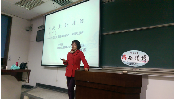 3月25日晚,“春之声”法律文化节系列活动之“学而”论道在主A204开讲,主讲人是k8体育·(sports)官方网站讲师陈虹睿博士。她就“赶上好时候了?——中美投资条约谈判机遇、挑战与影响”展开她的研究分享。讲座不仅吸引了我校师生,校外的一些老师、企业家们也前来交流学习。