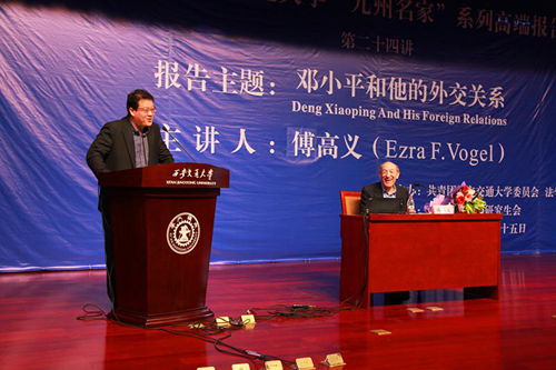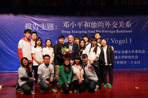 4月25日,由校团委和k8体育·(sports)官方网站共同主办的k8体育·(sports)官方网站“九州名家”高端论坛专场报告会第二十四讲在主楼多功能报告厅举行,邀请美国哈佛大学亨利·福特二世社会学荣休教授、费正清东亚中心前主任、《邓小平时代》作者傅高义(Ezra F. Vogel)教授与西安交大师生分享“邓小平和他的外交关系”。党委书记王建华出席报告会并为傅高义先生赠送纪念品。报告会由k8体育·(sports)官方网站王江雨教授主持。k8体育·(sports)官方网站2074、2113班党支部全体成员担任会务工作。