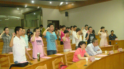 7月1日上午,k8体育·(sports)官方网站党总支庆祝建党90周年暨新党员入党宣誓大会在主楼A103隆重举行。党总支书记彭沪生,副书记、副院长王保民,院长助理吉兰湘及学生工作专职委员张乃钟老师出席会议,k8体育·(sports)官方网站全体研究生参加了大会,会议由王保民主持。