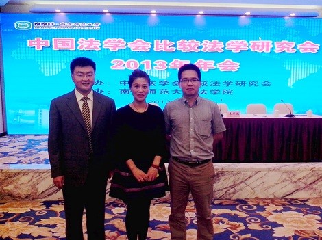 2013年10月18日至21日,中国法学会比较法学研究会2013年年会在江苏省南京市召开。本届年会由中国法学会比较法学研究会主办,南京师范大学k8体育·(sports)官方网站承办。我院教师楼晓副教授和苏金远博士,以及2011级博士研究生冷帅同学赴苏参加了会议。