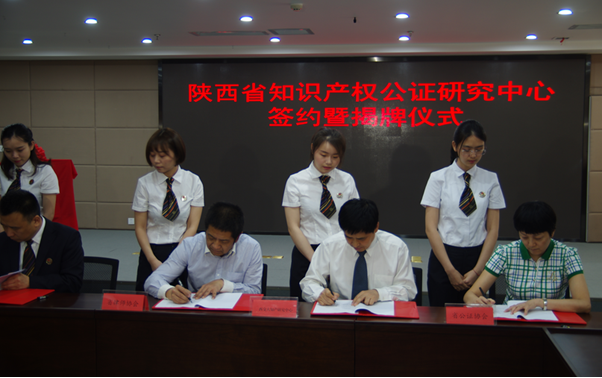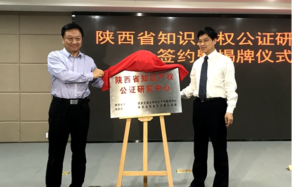 5月7日,由我中心联合陕西省公证协会、陕西省律师协会和陕西省汉唐公证处联合发起设立的陕西省知识产权公证研究中心正式揭牌成立。陕西省司法厅副厅长李艾平、警务监督处处长王小桥、西安交大知识产权研究中心主任马治国、陕西省公证协会会长杨磊、陕西省律师协会副会长姚子奇等出席了揭牌仪式。