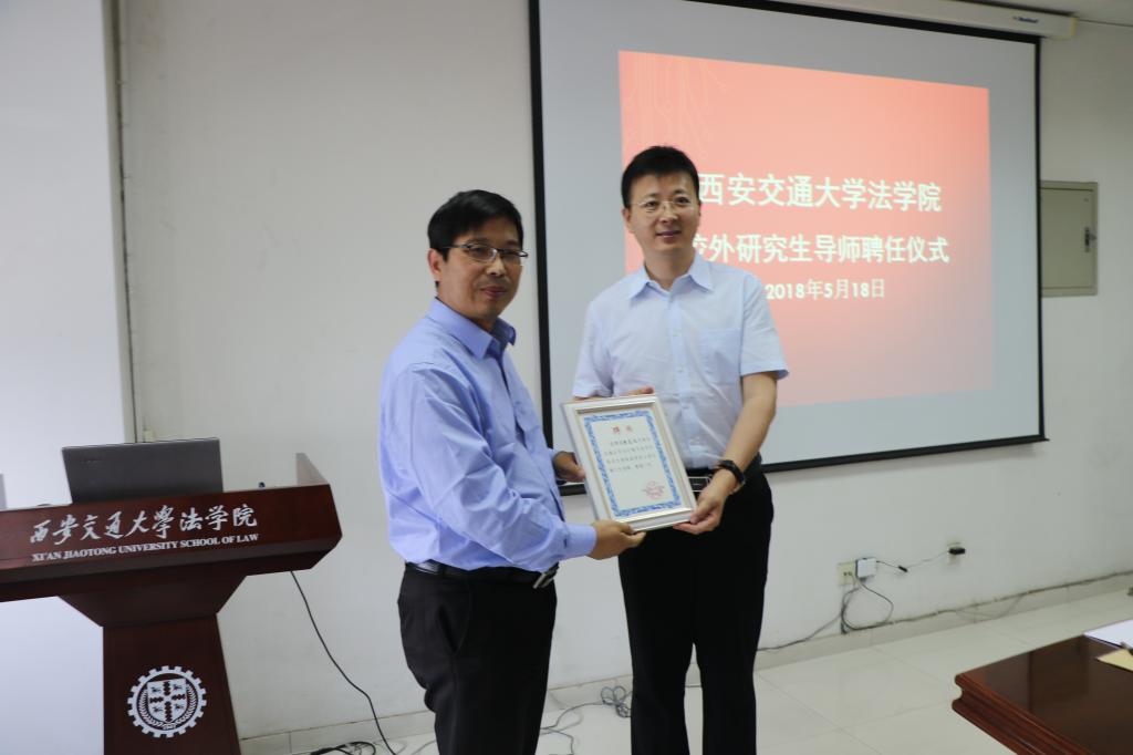 聘任仪式由李万强副院长主持。李万强副院长就k8体育·(sports)官方网站k8体育·(sports)官方网站的学科建设情况向几位校外导师作了的介绍。王保民书记代表学院为北京市康达(西安)律师事务所高级合伙人吕延峰、王小军、廉高波、王啸和白玉等五位律师颁发了聘书。王保民书记在致辞中向北京市康达(西安)律师事务所对我院研究生培养工作的支持表达了诚挚的谢意,对今后双方能够建立起长效的合作机制表达了殷切的期望。王小军主任代表律师事务所对k8体育·(sports)官方网站协同培养育人项目的设立对于法律专业人才培养发挥的作用给予了充分的肯定,并表示北京市康达(西安)律师事务所一定会全力配合学院的教学安排,力争为社会培养更多优秀的专业事务型法治人才。