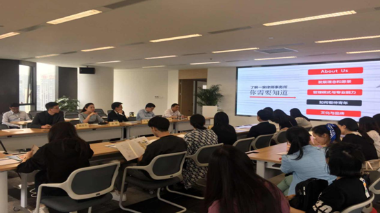 随后海普睿诚律师事务所代表人员和交大k8体育·(sports)官方网站的同学们在会议室就坐。首先由海普睿诚律师事务所行政总监种贵兴表达了对k8体育·(sports)官方网站马治国教授一行的欢迎及感谢;其次由运营总监孙婷详细讲解了海普睿诚律师事务所的规模、业务领域、专业建树、发展历程和社会公益等情况;再由律所最年轻的高级合伙人王奇律师以其自身的从业经历为同学们讲授了成为一名律师所应具备的能力与素质。