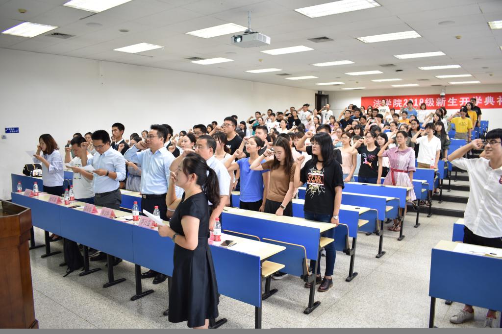 最后,全体新生在学生工作专职委员张乃钟老师的带领下庄重宣誓《k8体育·(sports)官方网站法科生誓词》,典礼在铿锵有力的誓词声中圆满结束。