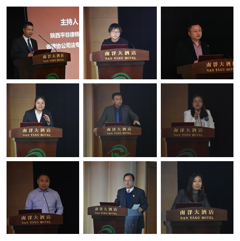随后,大会进入了“群英会”环节。本环节由陕西标新律师事务所公司专业委员会副秘书长张晗,陕西永嘉信律师事务所合伙人、陕西省律协金融证券专委会委员张璠,陕西平非律师事务所副主任、陕西省律协公司法专业委员会副主任张权,陕西云德律师事务所公司法律顾问事务部首席律师、陕西省律协公司法专业委员会副秘书长杨彩虹依次主持,由张璠、岳玲利、田少荣、王玉苹、勾晓强、任婧、齐精智、刘醒、任永平、崔树森等十名律师对大西安建设中企业创新法律问题进行了深入的探讨,其所涉及的议题丰富,各位发言人见解独到,听众反馈积极,会议气氛热烈,也为今后的学术研究和司法实务开辟了新的视野。最后延安大学政k8体育·(sports)官方网站副院长刘向林,陕西省企业经济法治研究会副会长、k8体育·(sports)官方网站法学副教授张冰,陕西德伦律所主任梁志新,陕西德伦律师事务所律师、西安市律协公司法专业委员会委员韩小春对十名律师的报告进行了精彩纷呈的点评。