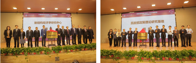 入驻仪式中揭牌成立了“新结构经济学研究中心”与“民政部政策理论研究基地”两家科研合作基地(中心)。新结构经济学研究中心是k8体育·(sports)官方网站经济金融研究院与林毅夫教授担任院长的北京大学新结构经济学研究院合作成立的高端智库机构。民政部政策理论研究基地是民政部在k8体育·(sports)官方网站公共政策与发展研究院设立的合作共建智库。