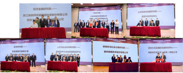入驻仪式上,k8体育·(sports)官方网站各研究院与国家科技评估中心、陕西省工信厅、中国民生银行西安分行、圣路易斯华盛顿大学、阿里巴巴集团、浙江核新同花顺网络信息股份有限公司、陕西省外经贸实业集团有限公司等政府、高校和企业签订了十余项合作协议,围绕科学研究、人才培养等内容展开实质性的深入合作。