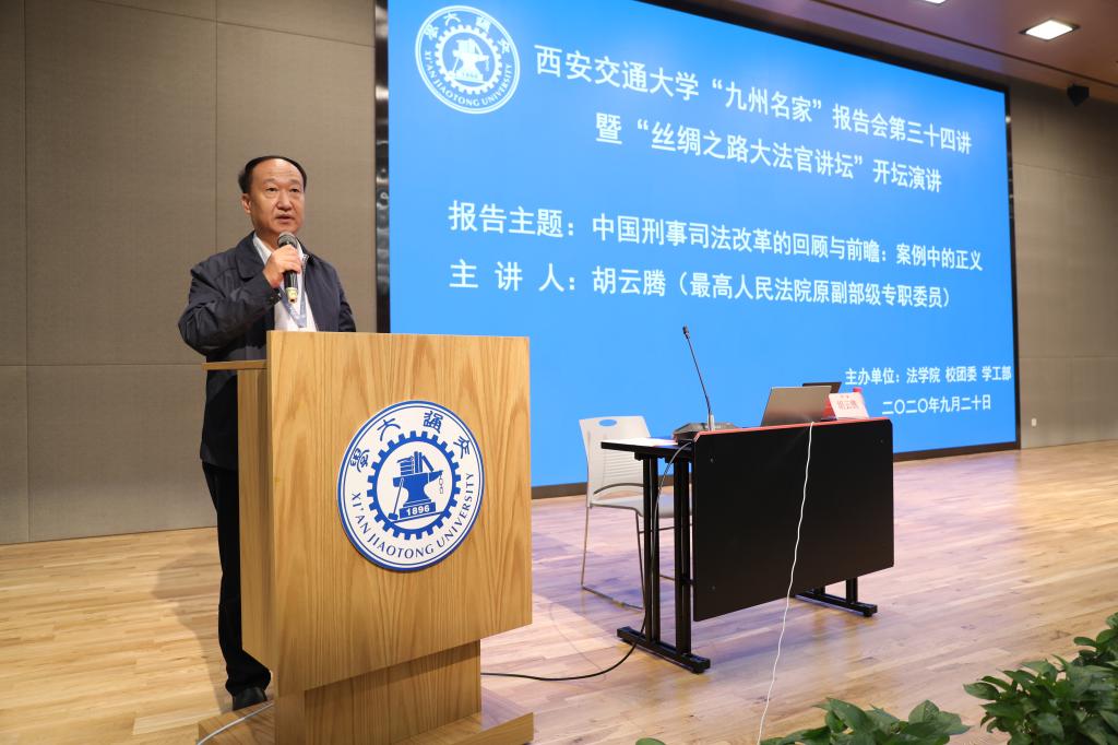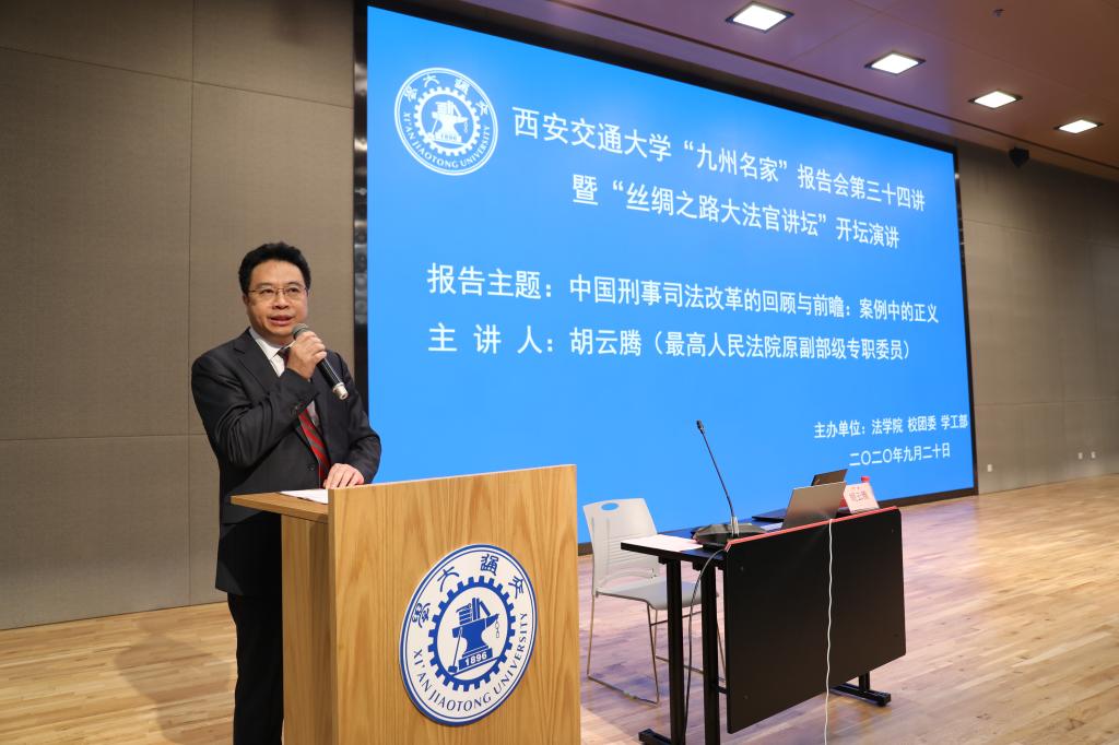 2020年9月20日,最高人民法院原副部级专职委员胡云腾大法官在中国西部科技创新港开坛论道,以《中国刑事司法改革的回顾与前瞻:案例中的正义》为题,畅谈中国司法改革40余年变化与成就。王树国校长在涵英楼11楼会见了胡云腾大法官。校党委副书记赵昌昌出席了报告会并致辞,校团委书记苏翔,陕西省律师协会会长韩永安,贸仲丝路中心秘书长助理蒋红梅,k8体育·(sports)官方网站副院长李万强,k8体育·(sports)官方网站副院长丁卫老师一并出席报告会。报告会由k8体育·(sports)官方网站院长兼国际教育学院院长单文华主持。