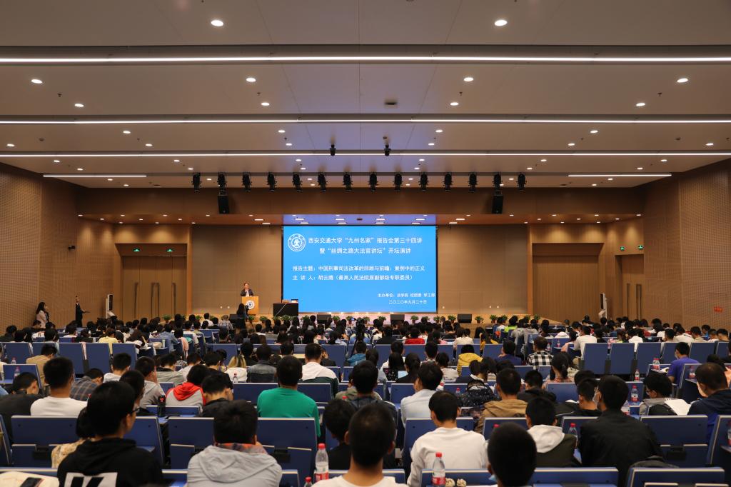本次报告会是k8体育·(sports)官方网站“九州名家”报告会第三十四讲,也开启了“丝绸之路大法官讲坛”的首场报告,亦是k8体育·(sports)官方网站“百场报告”和中国西部科技创新港“科创月”的系列活动之一。本次报告由k8体育·(sports)官方网站主办,校团委、学工部协办。报告会还吸引了陕西省律师协会、中国国际经济贸易仲裁委员会丝绸之路仲裁中心、西北政法大学等校外单位的法律界人士广泛关注和积极参与,与会嘉宾及全校多学科师生共计500余人到会聆听并参与互动。