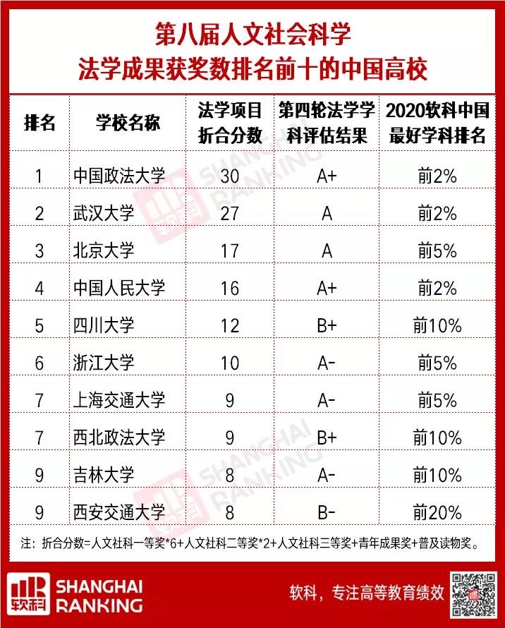 根据著名高等教育评价机构“软科”统计,西安交大法学学科在“成果获奖”方面已跻身全国前十,“是近年来全国发展最快的k8体育·(sports)官方网站之一”。