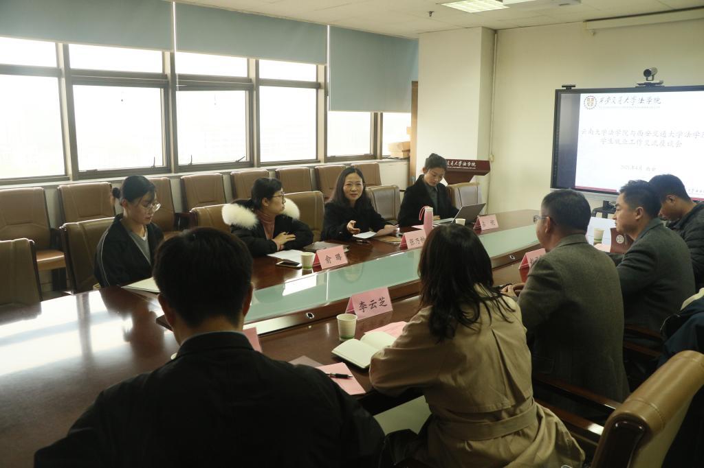随后,双方针对法学毕业生就业工作普遍存在的重难点问题进行了交流。刘蔓琦书记介绍了云南大学k8体育·(sports)官方网站学生就业工作的困难点,他指出生源特点、家庭经济情况、用人单位隐形性别歧视、学生就业观念传统等情况制约了就业工作的开展,导致学生就业率偏低。他对交大k8体育·(sports)官方网站的就业工作表示赞扬,指出我院就业工作呈现系统化、提前化、精细化等特点,许多就业帮扶举措值得学习。张乃钟指出,我院非常重视学生就业工作,工作中形成了本科生和研究生就业工作“一体化”管理服务机制,在学院领导下以学生工作专职委员为主干,教学副院长、兼职辅导员、研究生导师和科研团队以及本科生班主任、学业导师为补充的就业工作队伍。在就业信息发布、就业经验交流、就业指导帮扶、实习平台搭建、校友资源等方面合理配置,精准发力,努力确保每一名毕业生顺利就业。特别是2020年k8体育·(sports)官方网站研究生毕业生在基层选调生,世界五百强企业就业等重要指标超额完成学校目标任务,取得建院13年以来历史最好成绩。学院就业助理丛珊也从毕业生角度对我校选调生考试温馨培训以及学院“管家式”的就业精准指导和帮扶等方面分享了自己的心得和感受。