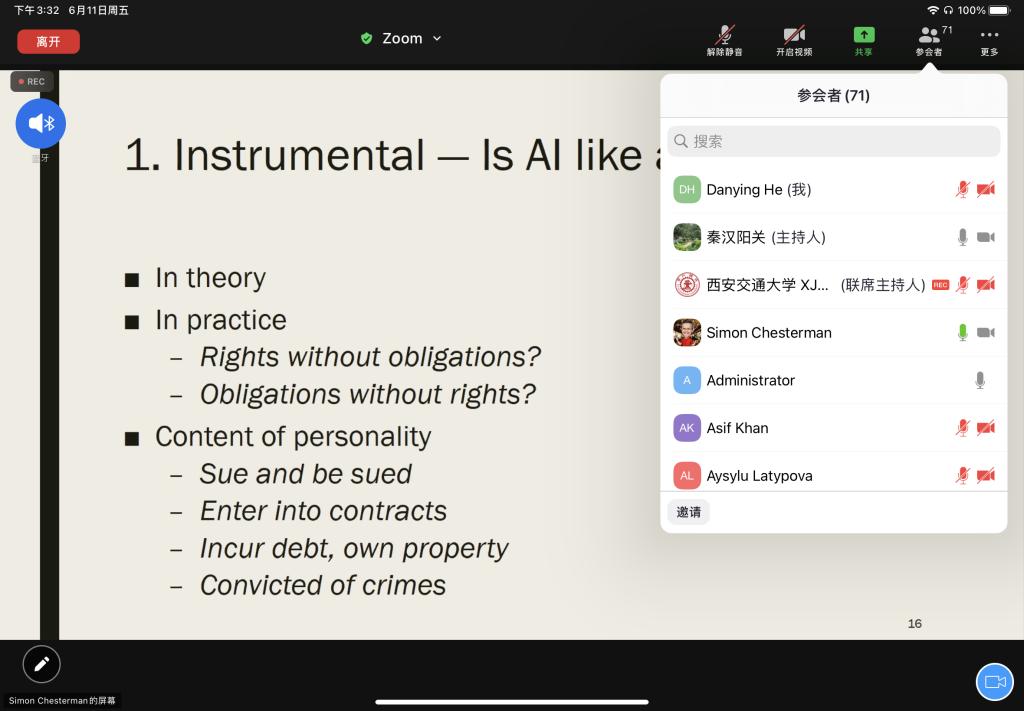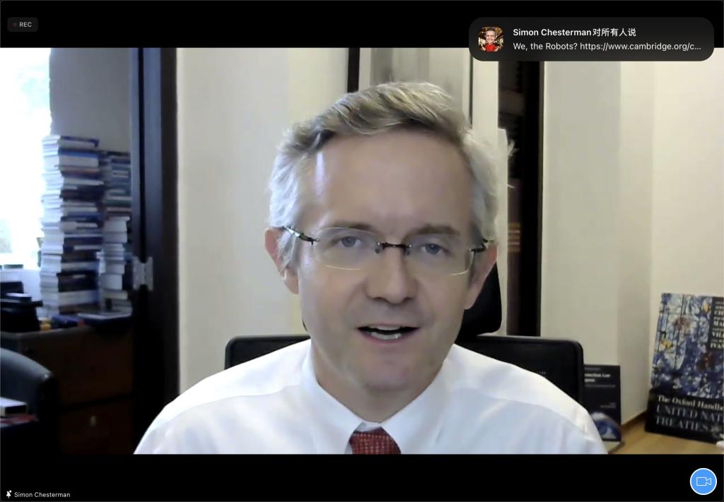 2021年6月11日下午,新丝路k8体育·(sports)官方网站联盟“院长论坛”首场讲座成功举办。新加坡国立大学讲席教授、k8体育·(sports)官方网站院长Simon Chesterman教授为联盟25所院校师生以及丝绸之路大学联盟的师生带来了题为“我们,机器人?人工智能与法律人格的限度(We, the Robots? Artificial Intelligence and the Limits of Legal Personality)”的线上讲座。讲座由k8体育·(sports)官方网站k8体育·(sports)官方网站单文华院长主持,国际处雷艳君副处长致辞。