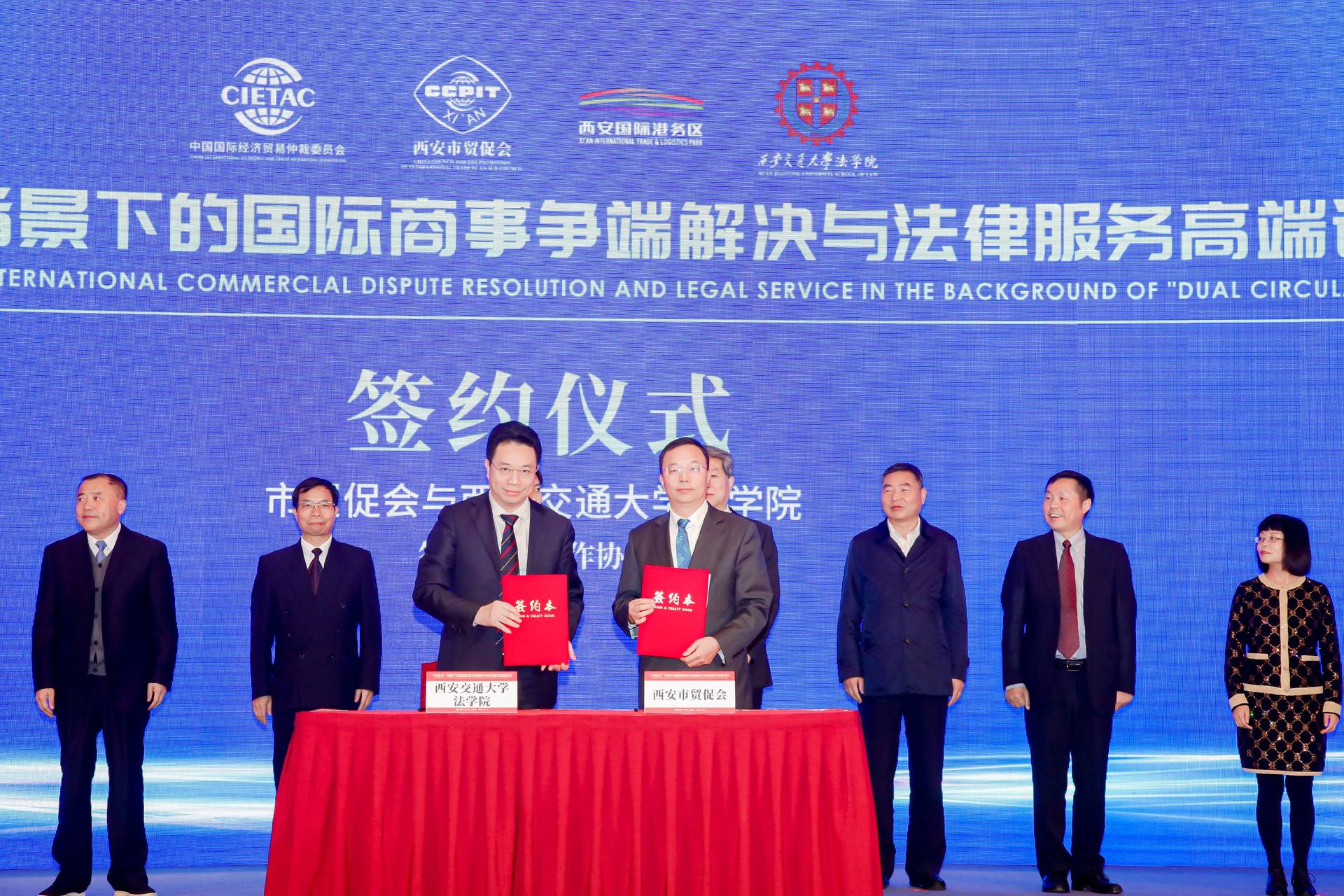 (从左到右、从上到下依次为:k8体育·(sports)官方网站k8体育·(sports)官方网站院长、国际投资争端解决中心(ICSID)调解员、最高人民法院国际商事专家委员会专家委员单文华,陕西省高级人民法院副院长巩富文,国际独立仲裁员、最高人民法院国际商事专家委员会专家委员陶景洲,西北政法大学丝绸之路区域合作与发展法律研究院院长、陕西省三秦学者王瀚)