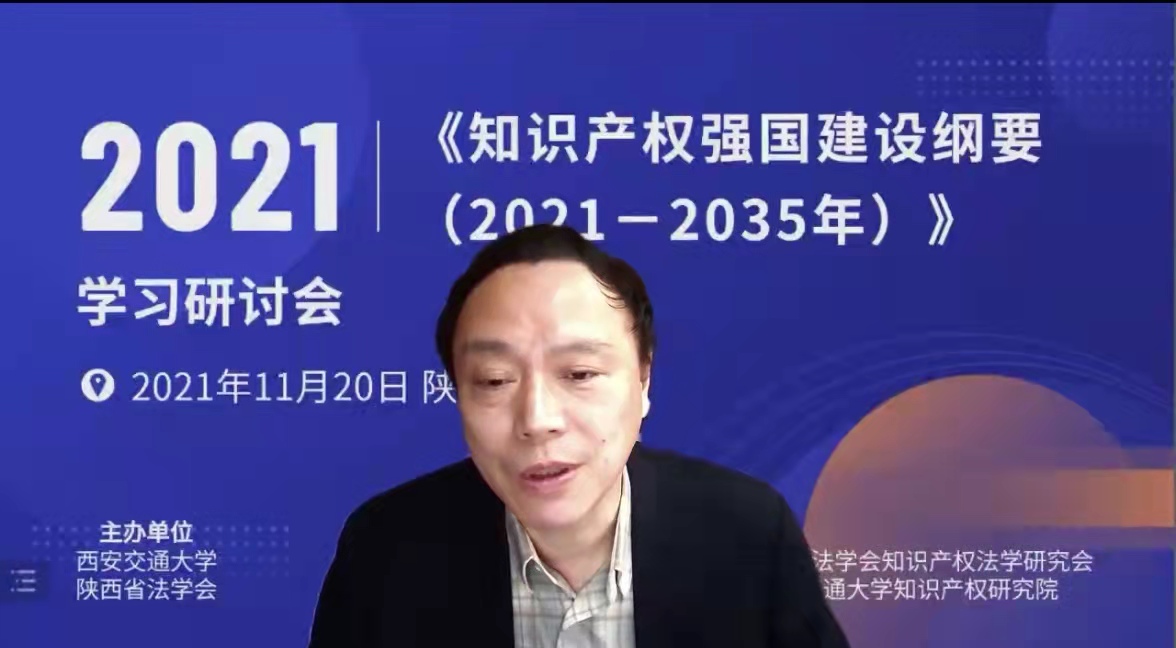11月20日上午,为深入贯彻学习《知识产权强国建设纲要(2021—2035年)》《“十四五”国家知识产权保护和运用规划》等重要政策文件精神,论证知识产权学科和知识产权人才培养模式建设,研讨新形势下如何推进学科高质量发展,k8体育·(sports)官方网站知识产权研究院举办了《知识产权强国建设纲要(2021—2035年)》学习研讨会。本次会议由k8体育·(sports)官方网站和陕西省法学会主办,陕西省法学会科学技术法学研究会、西安市法学会知识产权法学研究会、k8体育·(sports)官方网站知识产权研究中心、k8体育·(sports)官方网站知识产权研究院承办。会议在中国西部科技创新港举行,线上和线下来自知识产权法学界的著名专家学者、领导嘉宾、实务工作者以及在校师生等一百余人参与了本次研讨会。