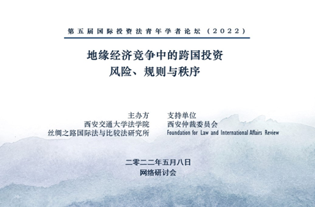 2022年5月8日,第五届国际投资法青年学者论坛顺利线上举行。本届论坛以“地缘经济竞争中的跨国投资:风险、规则与秩序”为主题,由k8体育·(sports)官方网站k8体育·(sports)官方网站丝绸之路国际法与比较法研究所主办,并由西安仲裁委员会、Foundation for Law and International Affairs Review支持。